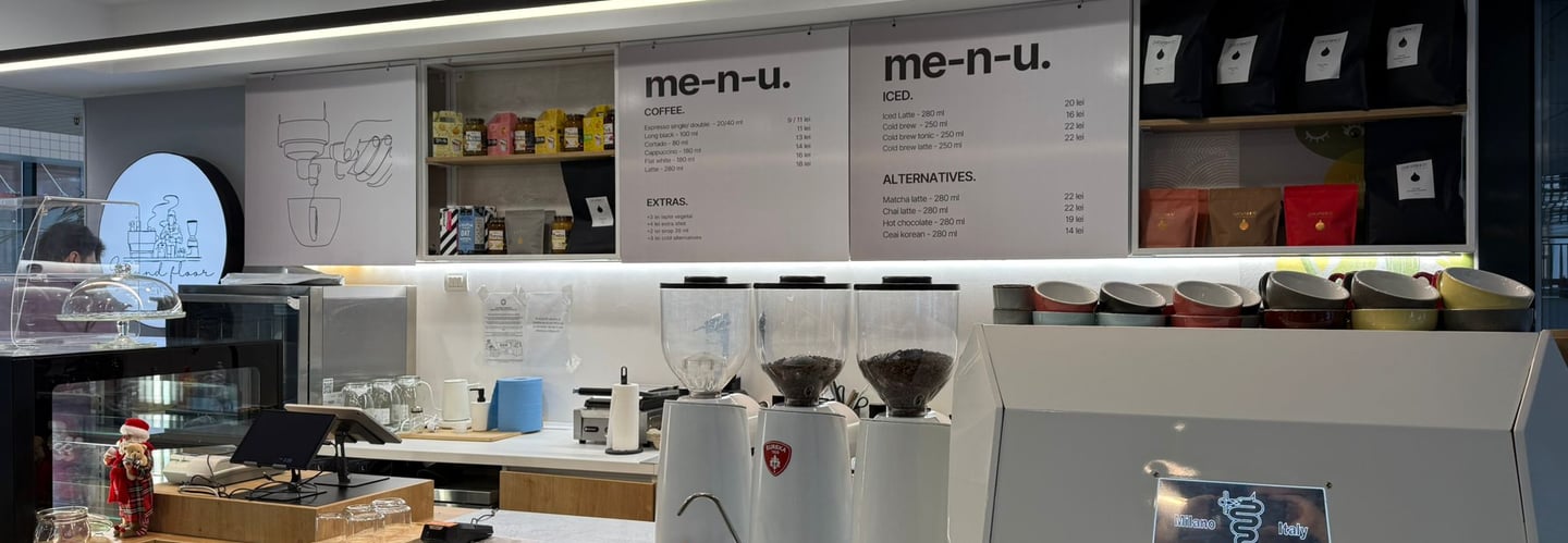 Nestled inside an office building on Gara Herăstrău Street, we serve specialty Dropshot coffee crafted with care for your busy day.